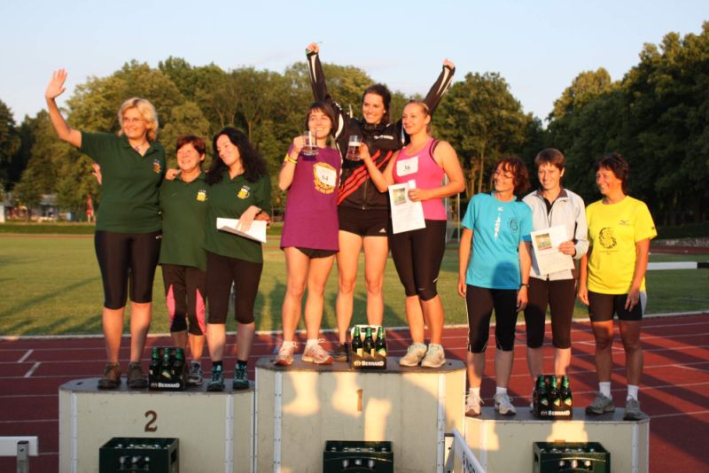 | Rozdělovští sršniTýmové úspěchy na Bernard pivním půlmaratonu SPAZávod pořádá Sdružení přátel atletiky každoročně začátkem června na kladenském sletišti. Pivní půlmaraton sestává z běhu na 600 m, vypití dvou desetistupňových Bernardů a běhu na 497,5 m. (Tato trať je vypsána pro ženy, muži soutěží v maratonu, jehož atmosféru při jedenáctém ročníku zachytil Miloš Kmuníček.) Kromě jednotlivců souteží i tříčlenná družstva, a to prostým součtem časů svých členů z hlavního závodu. Rozdělovští sršni se účastnili už dvou ročníků a vždy to bylo na bednu: 16. ročník (12. 7. 2013), celkový čas 30:08 (první místo)Tým ve složení: Jana Kmuníčková (8:45), Kristýna Šenderová (12:08), Barbora Topinková (9:15) (na fotografii) 15. ročník (12. 7. 2012), celkový čas 47:20 (druhé místo)Tým ve složení: Ivana Jedličková (10:30), Jana Kmuníčková (14:35), Gabriela Raková (22:15) |